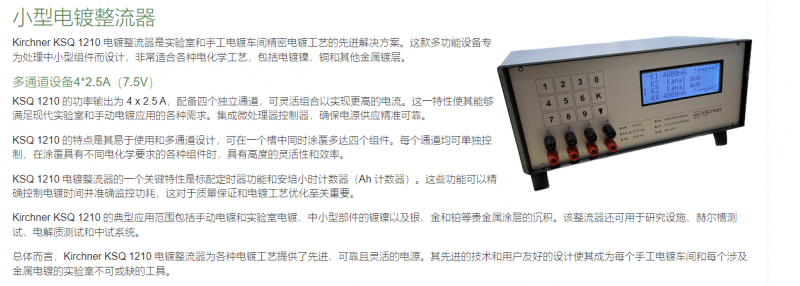 KIRCHNER 小型电镀整流器KSQ 1210系列